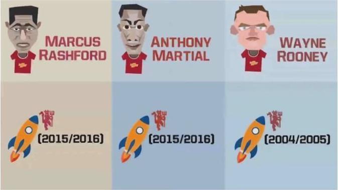 Video motion grafis mengenai data statistik debut Marcus Rashford, Anthony Martial dan Wayne Rooney di Manchester United.