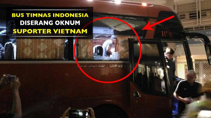 Bus yang mengangkut Timnas Indonesia usai leg kedua semifinal Piala AFF 2016 ditimpuki oknum suporter Vietnam.